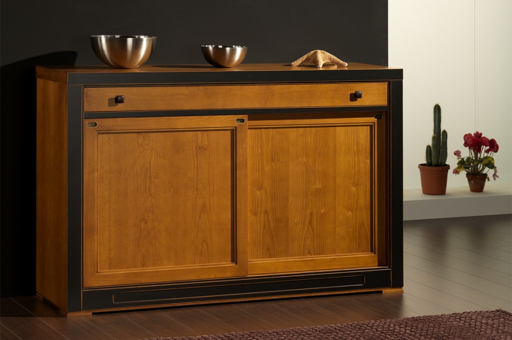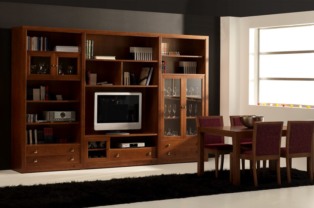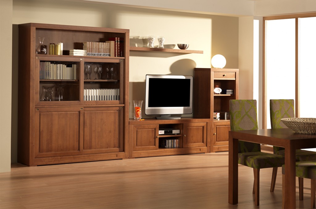 Este modelo dispone de diferentes acabados que van desde el color cerezo al melisien o anticuario. Dependiendo del color aplicado conseguimos que el mueble de salón se inscriba en un estilo u otro. Por ello el cliente puede adaptarlo a sus preferencias estilísticas. Además dispone de diferentes opciones en altura y anchos dando como resultado un amplio abanico de composiciones en muebles de salón